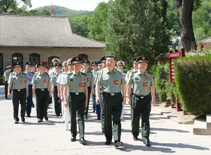 6月17日至19日,中央軍委政治工作會(huì)議在陜西延安召開(kāi)。中共中央總書(shū)記、國(guó)家主席、中央軍委主席習(xí)近平出席會(huì)議并發(fā)表重要講話。這是17日下午,習(xí)近平帶領(lǐng)軍委一班人和各部門各單位主要負(fù)責(zé)同志瞻仰王家坪革命舊址。新華社記者 李剛 攝