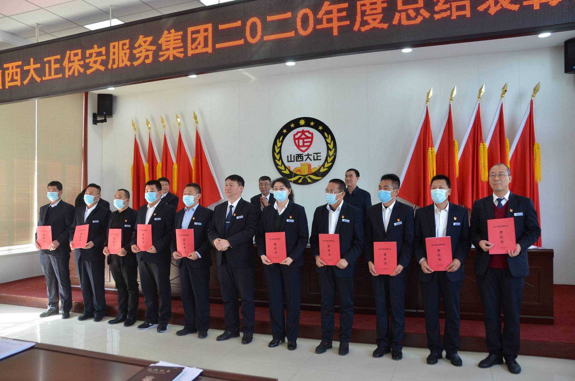 會上,黨委書記、董事長張躍生向公司各子公司、各部門、各黨支部負責(zé)人頒發(fā)了黨建目標(biāo)責(zé)任書、黨風(fēng)廉潔目標(biāo)責(zé)任書,黨委副書記、總經(jīng)理趙培宏向公司各子公司、各部門負責(zé)人頒發(fā)綜合治理目標(biāo)責(zé)任書、安全生產(chǎn)目標(biāo)責(zé)任書。大會在《大正保安之歌》歌聲中圓滿落幕。