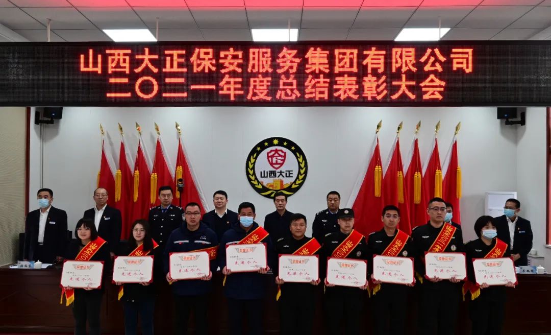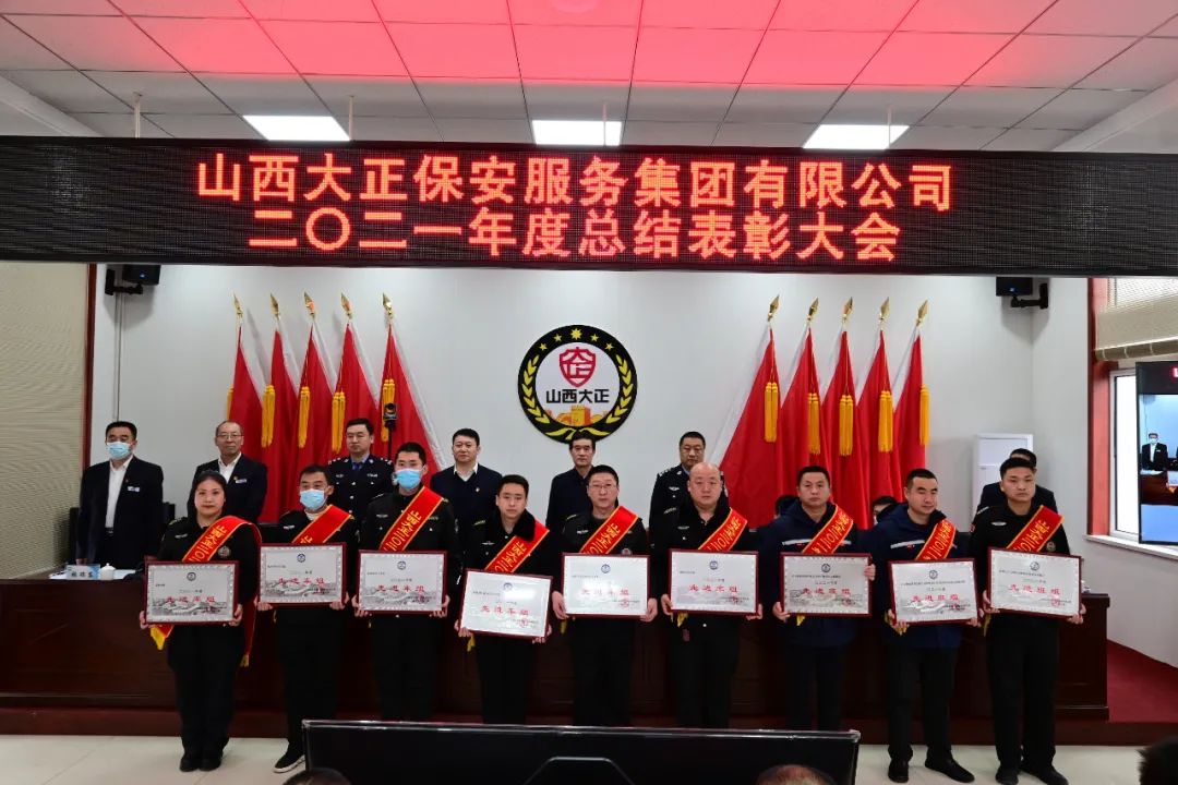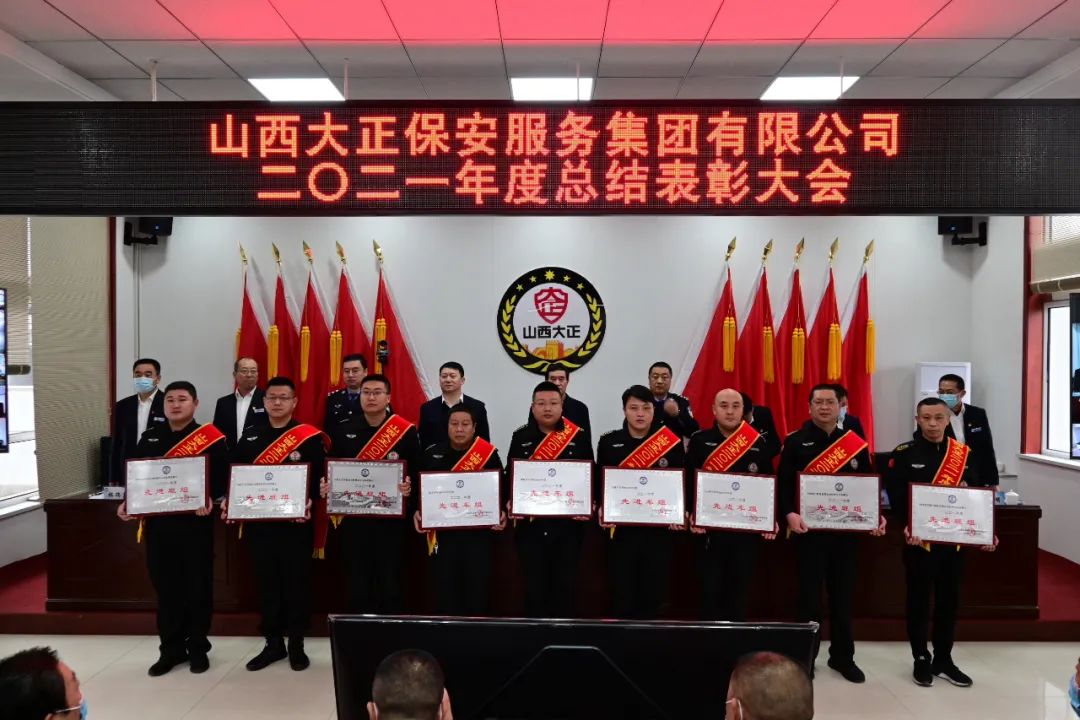 王明生宣讀《山西大正保安服務(wù)集團(tuán)有限公司二0ニ一年度“雙先”評比表彰決定》。隨后進(jìn)行了頒獎儀式。對受表彰的2021年度先進(jìn)單位、先進(jìn)集體、安全標(biāo)兵團(tuán)隊(duì)、新聞報(bào)道先進(jìn)單位、先進(jìn)班(車、庫)組、優(yōu)秀管理者、先進(jìn)個(gè)人頒發(fā)獎牌獎狀證書。