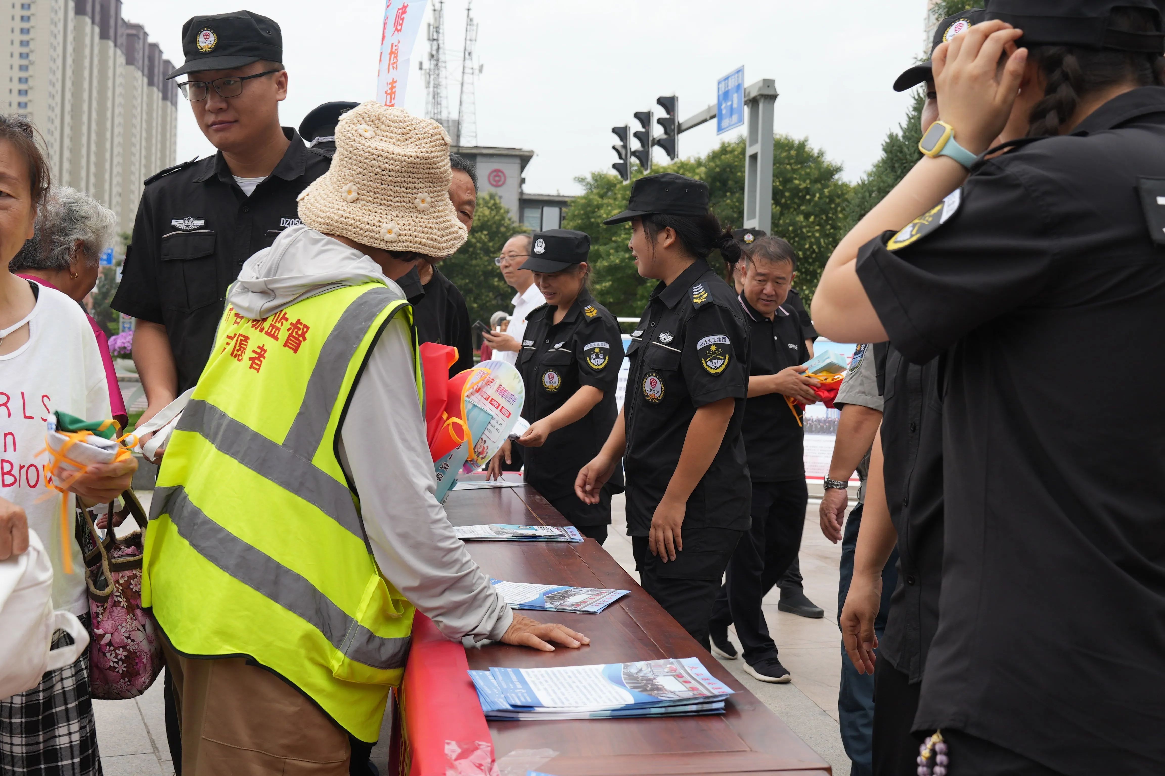 與此同時(shí),山西大正保安服務(wù)集團(tuán)有限公司也積極投身到宣傳活動(dòng)中來。精心制作了12塊宣傳展板,內(nèi)容涵蓋保安行業(yè)的職責(zé)使命、服務(wù)范圍、優(yōu)秀事跡等方面,生動(dòng)展示了保安隊(duì)伍的風(fēng)采和貢獻(xiàn)。保安隊(duì)員們更是主動(dòng)與市民互動(dòng),通過現(xiàn)場(chǎng)講解、模擬演示等方式,讓市民更加直觀地了解保安工作的重要性和必要性。