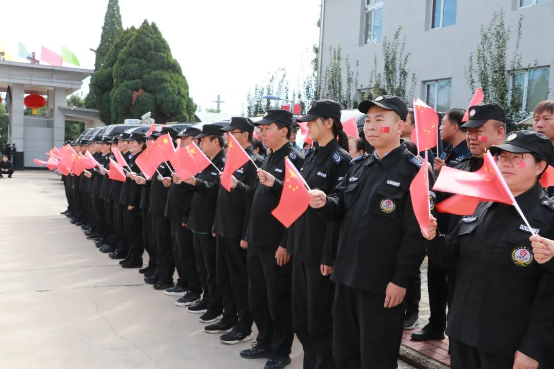節(jié)日的公司院內(nèi)外,四周花團(tuán)錦簇,大門口燈籠高掛、彩旗飄揚(yáng),為節(jié)日增添了濃厚的喜慶氛圍。公司運(yùn)鈔車、巡邏車、運(yùn)兵車干凈整潔,排列在場地兩側(cè),升旗儀式更顯隆重。9時(shí)30分,集團(tuán)公司、各子公司領(lǐng)導(dǎo)和機(jī)關(guān)各部門、城區(qū)員工共300多人整齊列隊(duì),懷著激動(dòng)的心情,手持小國旗,臉上貼著愛國貼紙、洋溢幸福的笑容,眼神中充滿了對祖國的熱愛和對升旗儀式的期待。