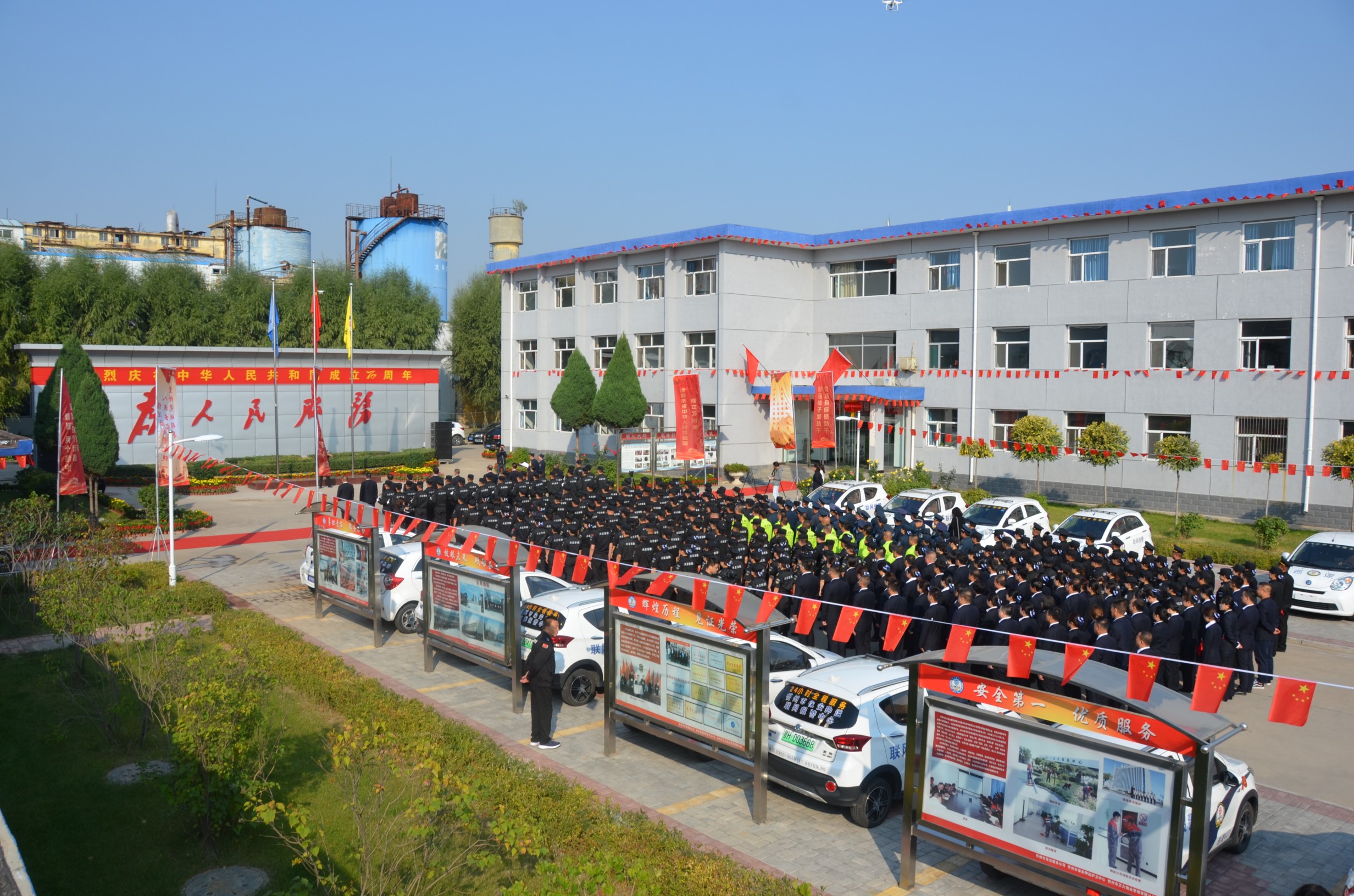 在中華人民共和國成立70周年即將來臨之際,為進一步提高廣大干部職工的愛國意識,營造濃厚的愛國愛企氛圍,激發(fā)正能量、提升凝聚力。9月27日,山西大正保安服務(wù)有限公司在公司城南駐地隆重舉行莊嚴的升旗儀式。黨委書記、董事長張躍生作重要講話,公司黨委委員、副總經(jīng)理趙培宏主持升旗儀式。王明生、邢春生、張瑞東、呂雙明等公司領(lǐng)導、機關(guān)各單位及基層九個分公司的400余名干部職工參加儀式。