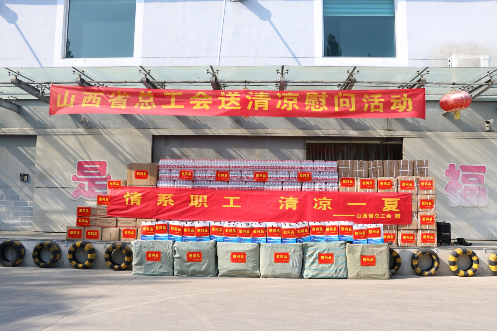 活動(dòng)中省、市總工會(huì)領(lǐng)導(dǎo)及公司黨政班子成員親自為員工發(fā)放慰問品。