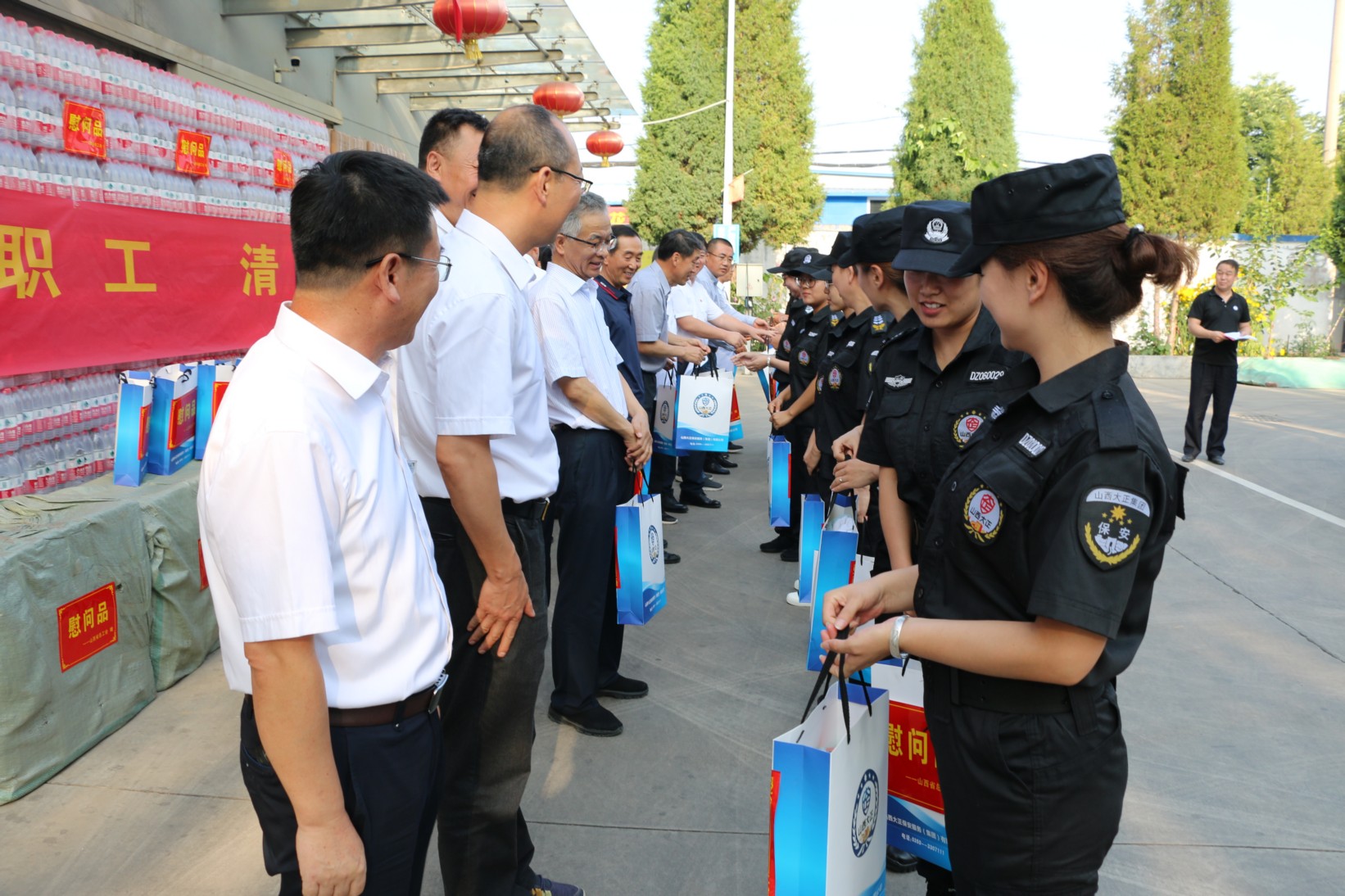 7月27日下午,省、市兩級(jí)總工會(huì)領(lǐng)導(dǎo)蒞臨我公司舉行“夏季送清涼”慰問活動(dòng),為堅(jiān)守在一線的職工朋友們送上夏日的關(guān)懷與問候,同時(shí)為職工朋友們贈(zèng)送一批防暑用品和對(duì)公司困難職工進(jìn)行慰問。省總工會(huì)黨組成員、副主席張亞琳;省總工會(huì)經(jīng)濟(jì)技術(shù)部副部長高偉;市人大副主任、市總工會(huì)主席魏廣才;市總組黨組書記、常務(wù)副主席王書鴻;市總工會(huì)副主席曲文斌;市總工會(huì)副主席左文蕾;公司黨政班子成員參加此次活動(dòng);顒(dòng)由山西大正保安服務(wù)有限公司黨委書記、董事長張躍生主持。