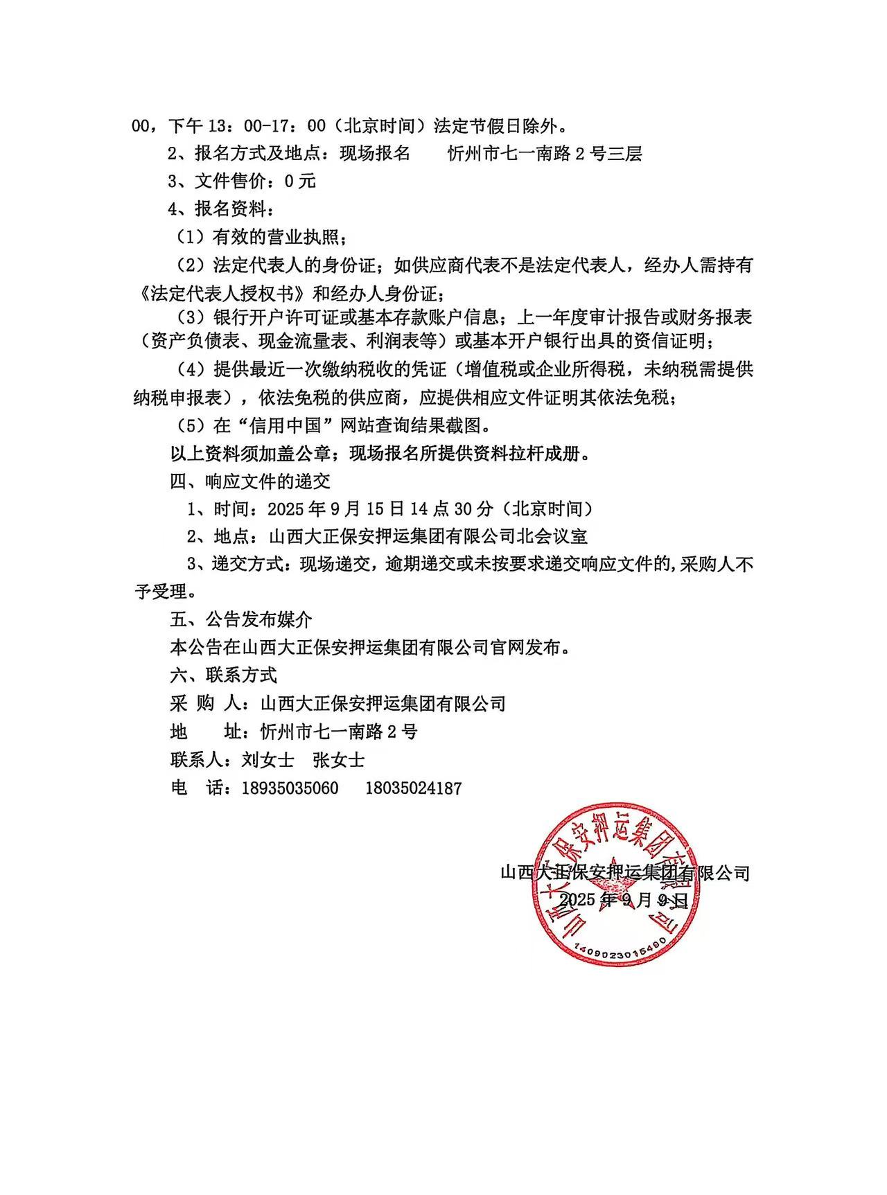 山西大正保安押運(yùn)集團(tuán)有限公司