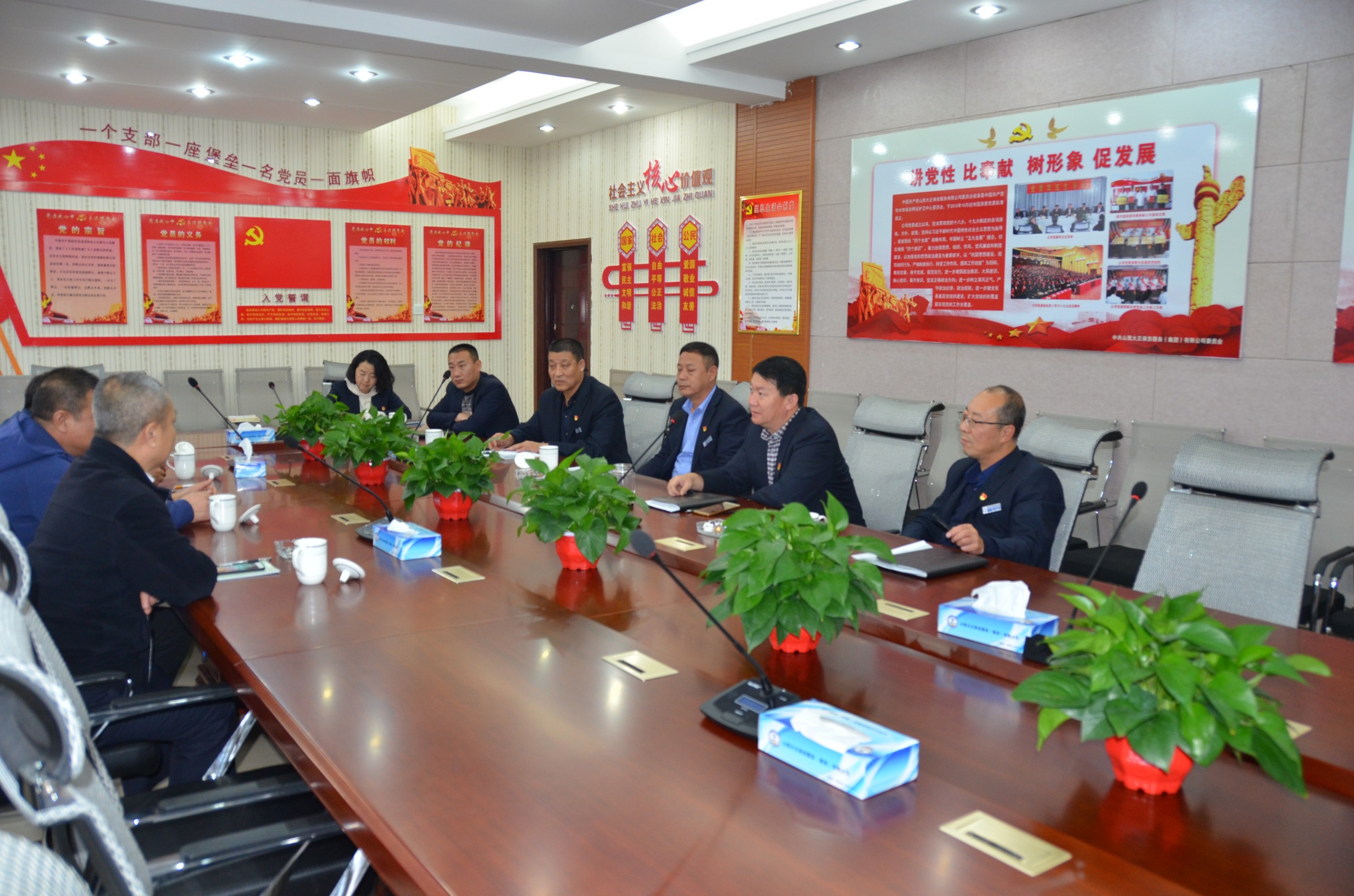 會上,與會人員回顧合作歷程,從展開業(yè)務(wù)合作至今,協(xié)商解決了很多工作中遇到的困難和問題,建立了良好合作發(fā)展關(guān)系。與會雙方在會上就具體業(yè)務(wù)合作中存在的問題進(jìn)行了深入地溝通探討,提出具體解決意見。銀行業(yè)參會人員對我公司良好的服務(wù)表示肯定,期望今后能夠繼續(xù)認(rèn)真履行職責(zé),完成好守押安保服務(wù)。