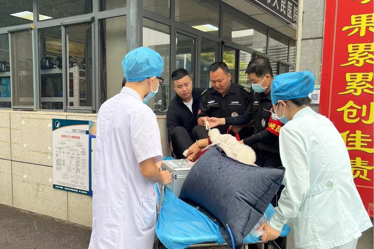 9月19日上午,伴隨著紛紛細(xì)雨,保安直屬公司市醫(yī)院駐勤中隊(duì)和往常一樣繁忙的一天開始了。9時(shí)許,西門人行通道正常查驗(yàn)場(chǎng)所碼過程中,一名中老年婦女只身一人手拎兩個(gè)包步履蹣跚顫顫巍巍走上前來,正在執(zhí)勤的兩名女隊(duì)員發(fā)現(xiàn)后急忙上前攙扶詢問是否需要幫助,話語間,老婦手里的包突然掉落地上,癱倒在女隊(duì)員身邊。在隊(duì)長(zhǎng)得知消息后,協(xié)同兩名男隊(duì)員即刻前往急診中心尋求醫(yī)生和擔(dān)架,待醫(yī)生到達(dá)過程中,老婦一直嘴上喊心口疼,并且頭昏,不時(shí)有嘔吐癥狀,一邊嘴上哭訴子女無人陪伴就醫(yī),兩名女隊(duì)員則在其身旁細(xì)心安撫情緒,告知醫(yī)生和擔(dān)架馬上過來。幾分鐘內(nèi)兩名男隊(duì)員和兩名醫(yī)生推著擔(dān)架車一路飛奔急忙趕來,醫(yī)生詢問后,兩名男隊(duì)員將婦女抬上擔(dān)架車,送至急診搶救。