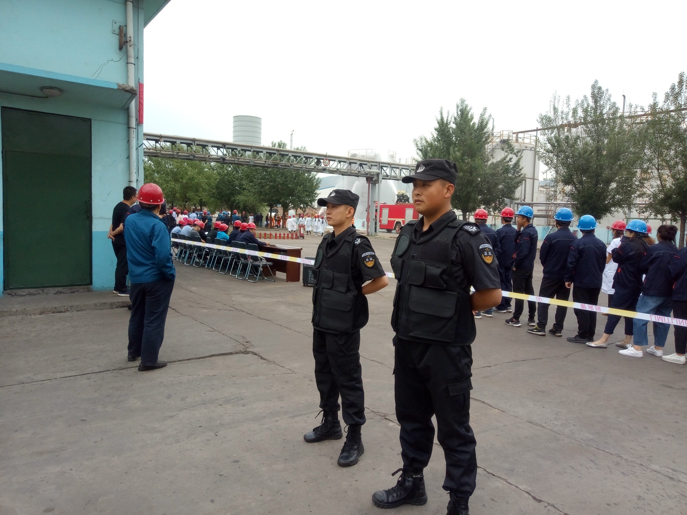 為了提高職工應(yīng)對突發(fā)事件能力,提高對重大危險源緊急事故的應(yīng)急處置技能,降低事故給企業(yè)帶來的財物損失率,減少事故對環(huán)境的影響,保障職工的生命和企業(yè)財產(chǎn)安全。6月15日,鑫宇公司駐勤點組織開展了一次關(guān)于“綜合罐區(qū)粗苯泄露燃燒事故應(yīng)急演練”,本次演練特邀岢嵐消防隊參與,縣安檢局、環(huán)保局等單位領(lǐng)導(dǎo)現(xiàn)場觀摩。在整個演練過程中我直屬隊員承擔警戒任務(wù),保證演練的順利進行。
